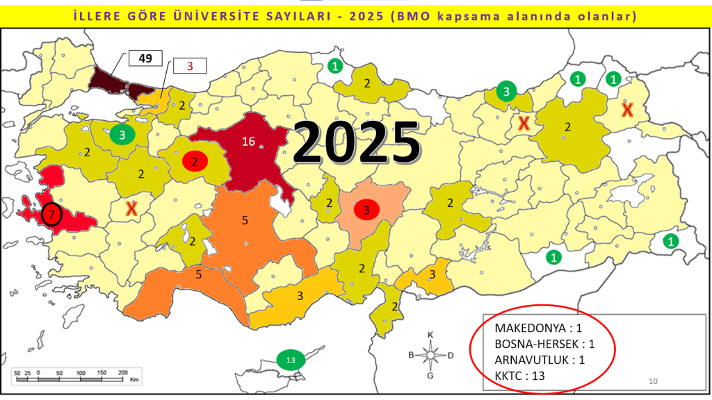 BMO ile ilgili bölümlerin sayıları ve 2025 yılı için açıklanan kontenjanları şöyledir: